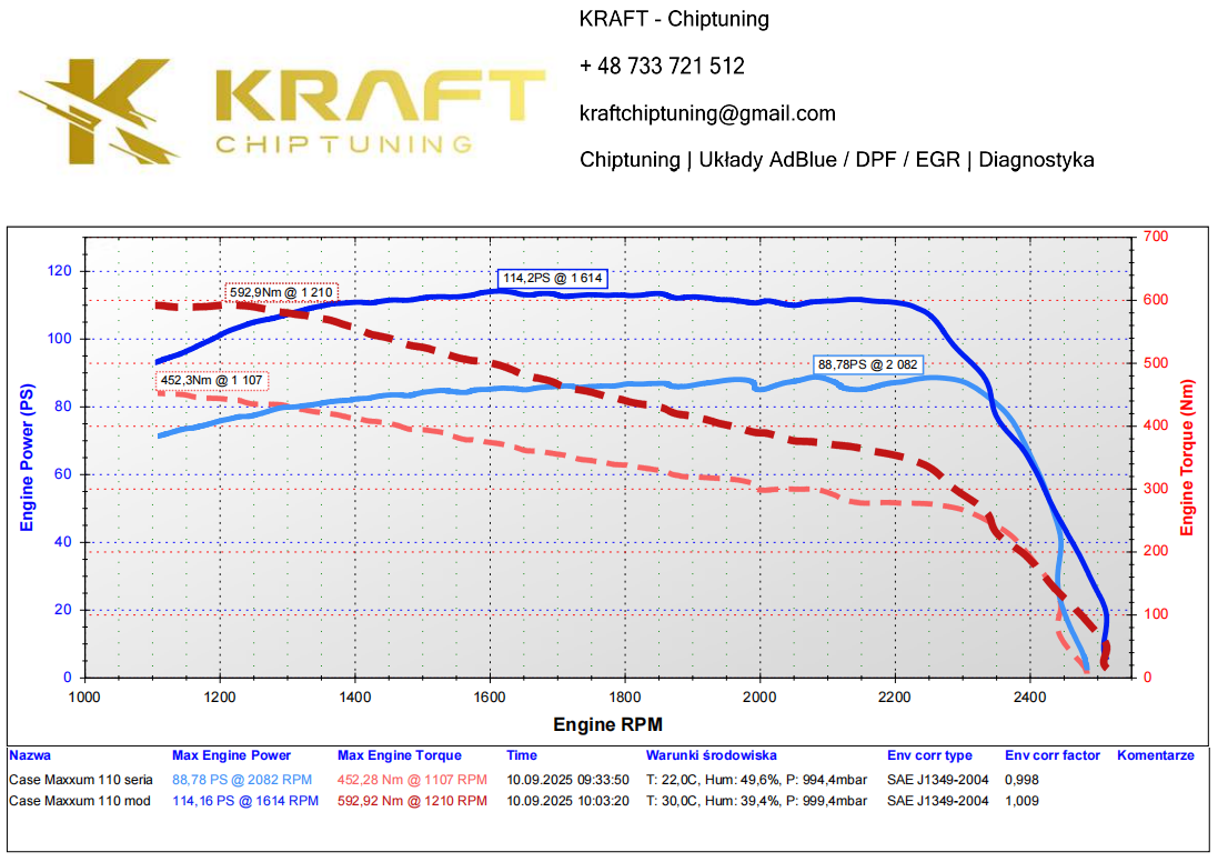 Case Maxxum 110 4.5 litra - podniesienie mocy na pompie mechanicznej
