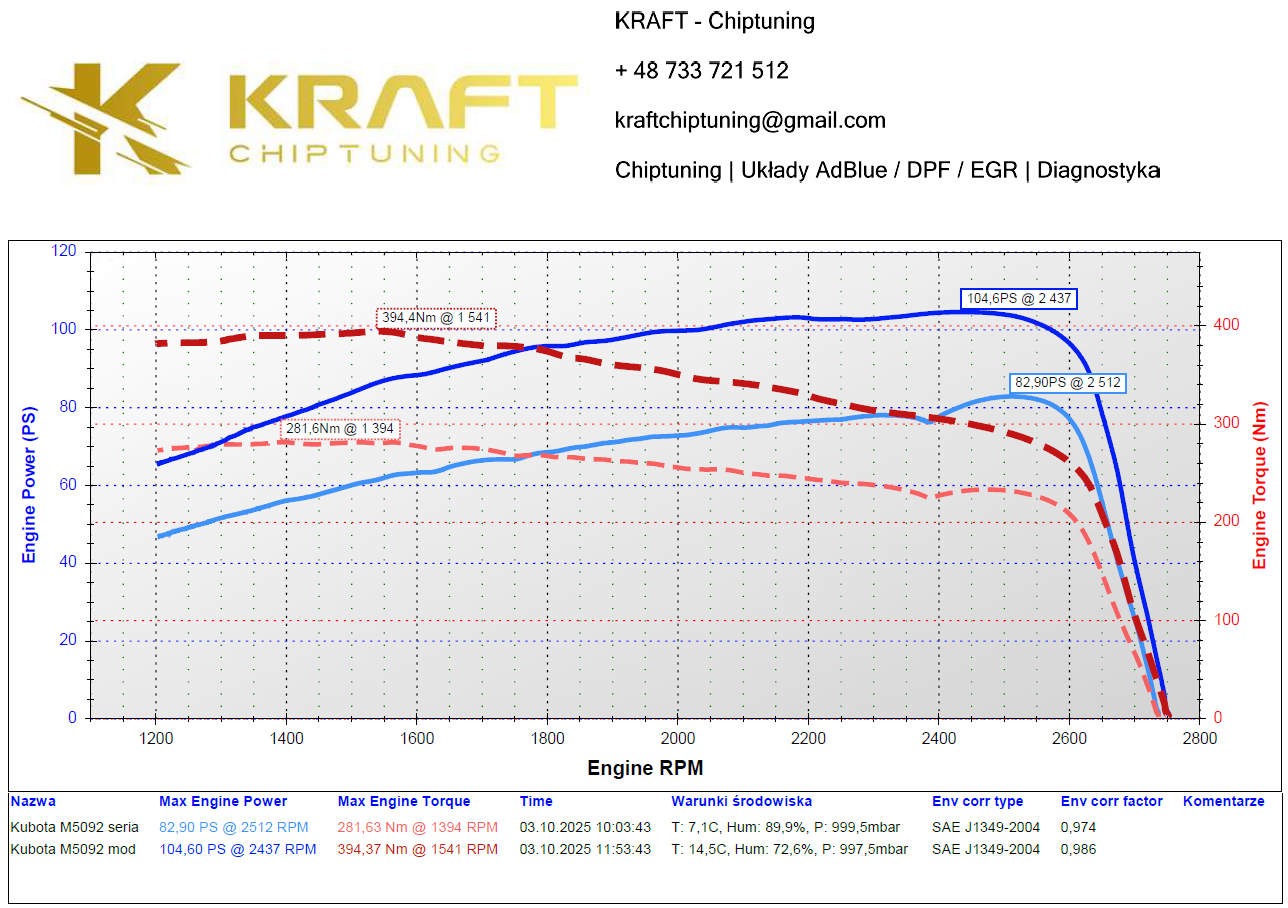 Kubota M5092 3.8 litra - podniesienie mocy, wyłączenie AdBlue / EGR / DPF