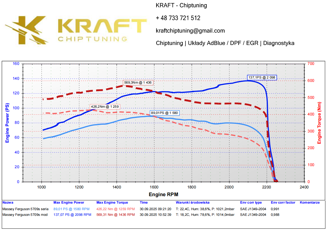 Massey Ferguson 5709S 4.4 litra SISU - podniesienie mocy
