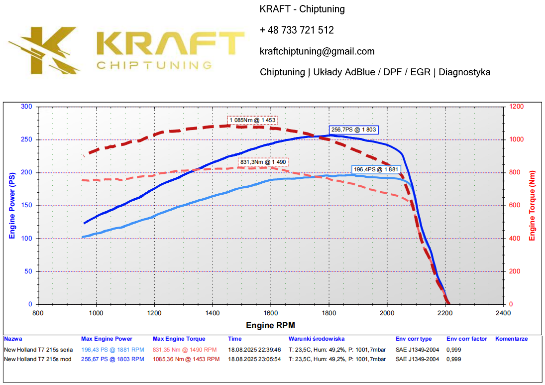 New Holland T7 215S 6.7 litra Tier 5 - podniesienie mocy, wyłączenie AdBlue / EGR / DPF