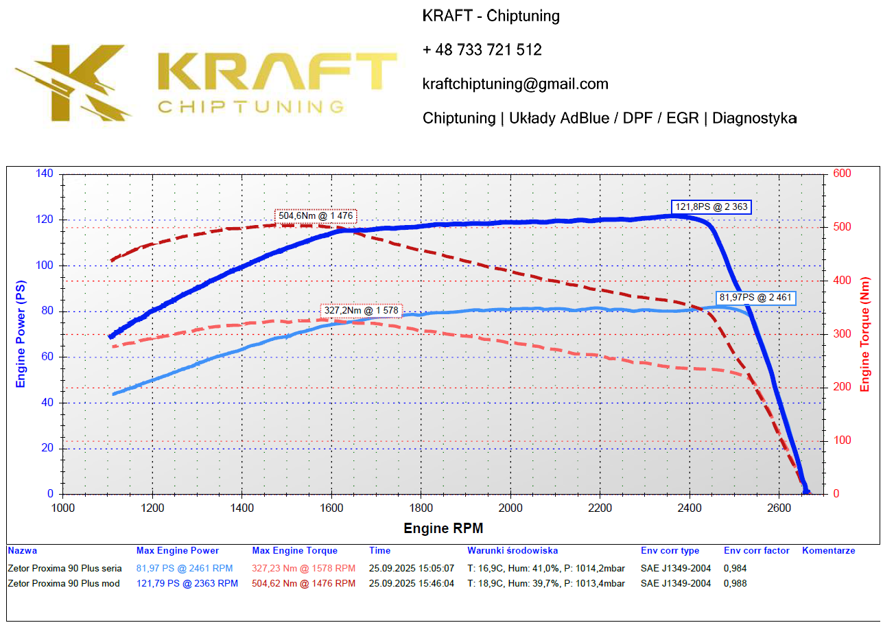 Zetor Proxima 90 Plus 4.4 litra - podniesienie mocy na pompie mechanicznej